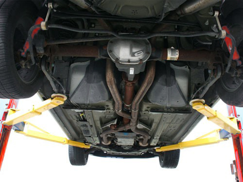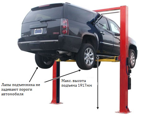 Модернизированный двухстоечный подъемник, гидравлический, с нижней синхронизацией г/п. 4т.