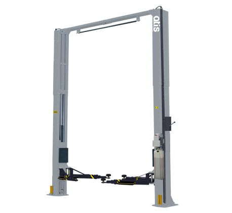Двухстоечный электрогидравлический подъемник с верхней синхронизацией, грузоподъемность 4.5 т, высота колонны 4035/4313мм, механическое управление стопорами на одной колонне.