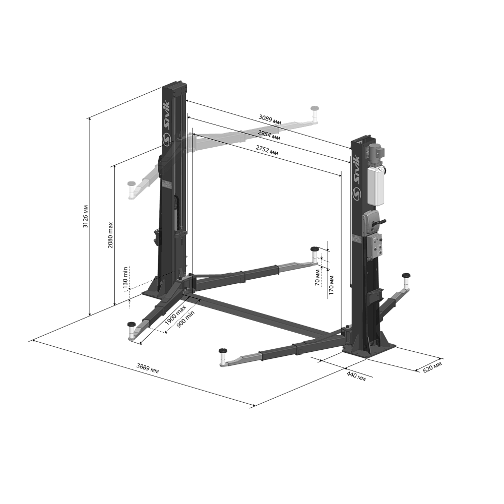 СИВИК ПГА-5000-НС Двухстоечный электрогидравлический подъемник г/п 5 тонн Серый купить в Новосибирске цена ✅ - Все для СТО