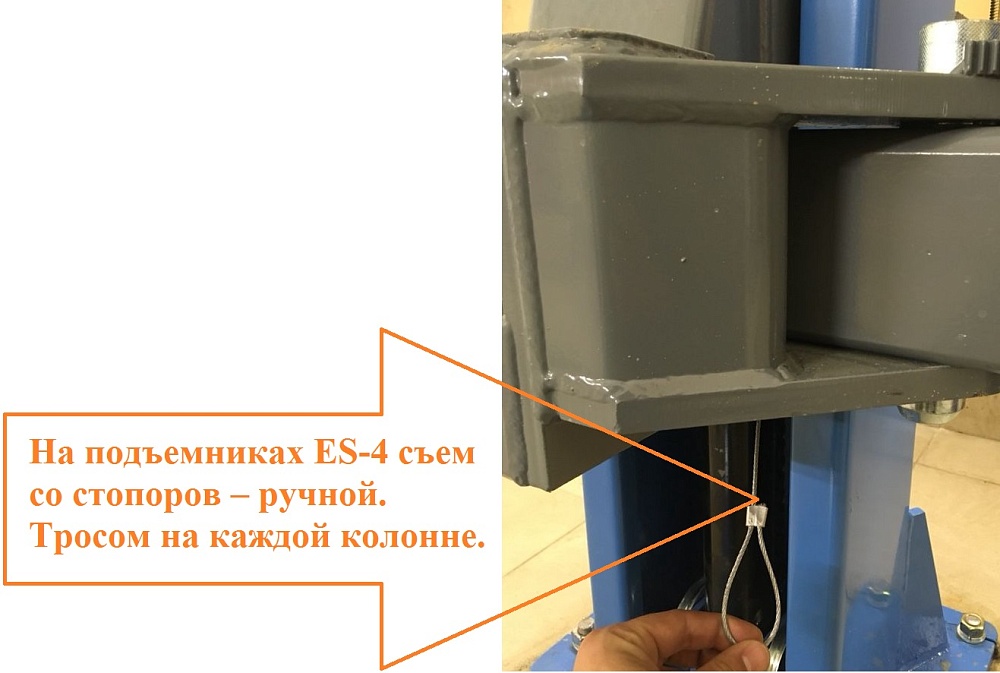 ·         Съем со стопоров – ручной. Тросом на каждой колонне.