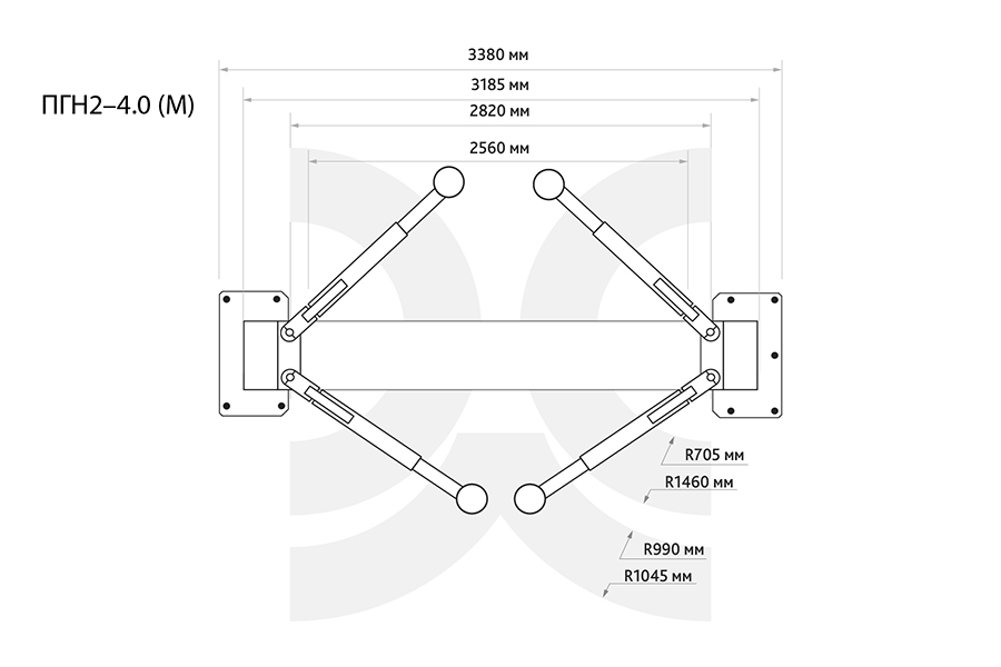 Длина передних лап 705–1045 мм Ширина между стоек     2820 мм