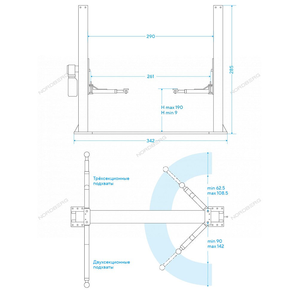 Подъемник двухстоечный 4 т, 380 В, серый NORDBERG N4120B-4G_3+2_380 купить в Новосибирске цена ✅ - Все для СТО