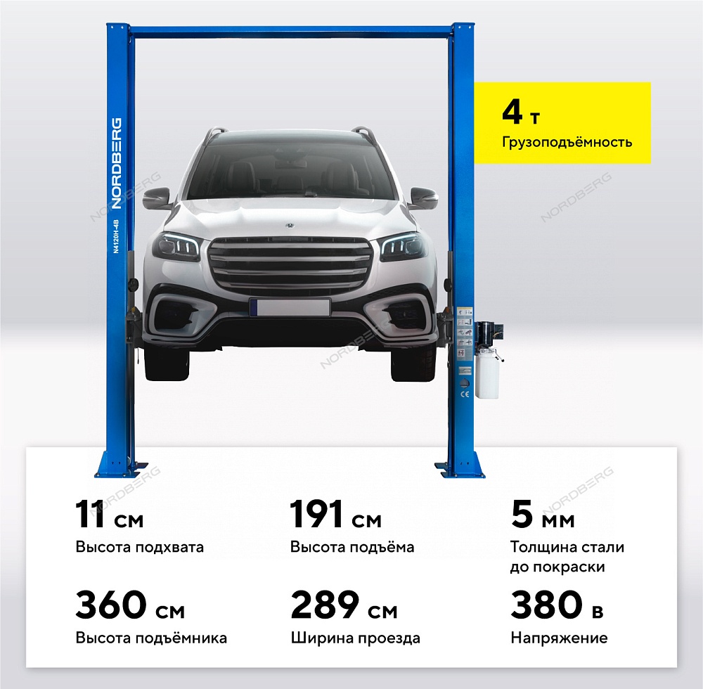 Двухстоечный подъемник NORDBERG N4120H-4B_3+2 – безопасное и надежное оборудование для проведения различных видов работ по обслуживанию и ремонту автотранспорта в автосервисах и СТО.
