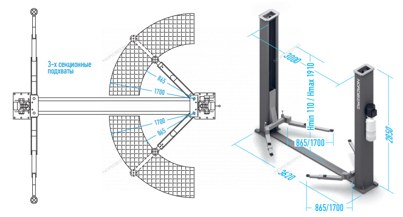Подъемник двухстоечный 5 т, нижняя синхронизация, с электростопорами, 380 В, серый NORDBERG N4122AE-5G_380 купить в Новосибирске цена ✅ - Все для СТО