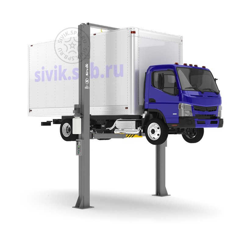 Sivik ПГА-5000/1 LCV — двухстоечный электрогидравлический подъемник для легкого коммерческого транспорта (LCV) с увеличенной до 4962 мм высотой. Электроуправление подъема и опускания, верхняя синхронизация, максимальная грузоподъемность — 5000 кг. Расположение стоек – симметричное.