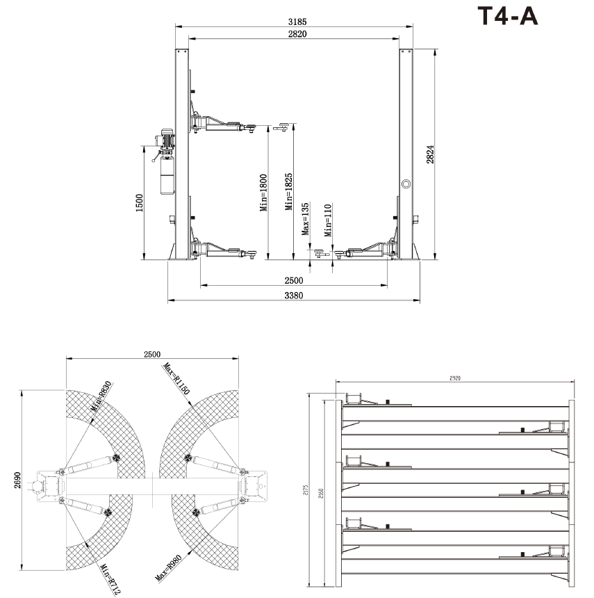 ATIS T4A Двухстоечный электрогидравлический подъемник 4 тонны купить в Новосибирске цена ✅ - Все для СТО