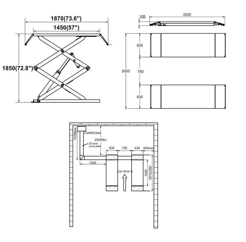 Подъёмник (RAL7031+7000) ножничный электрогидравлический г/п 3,5 т. (заглубляемый)
