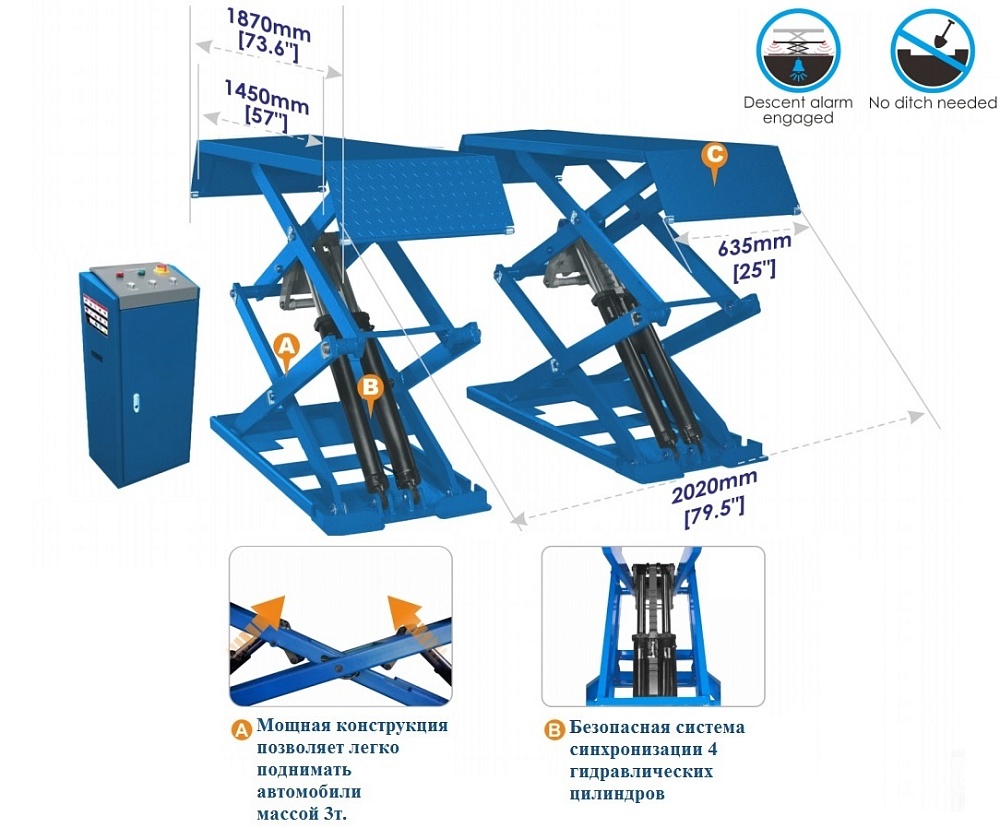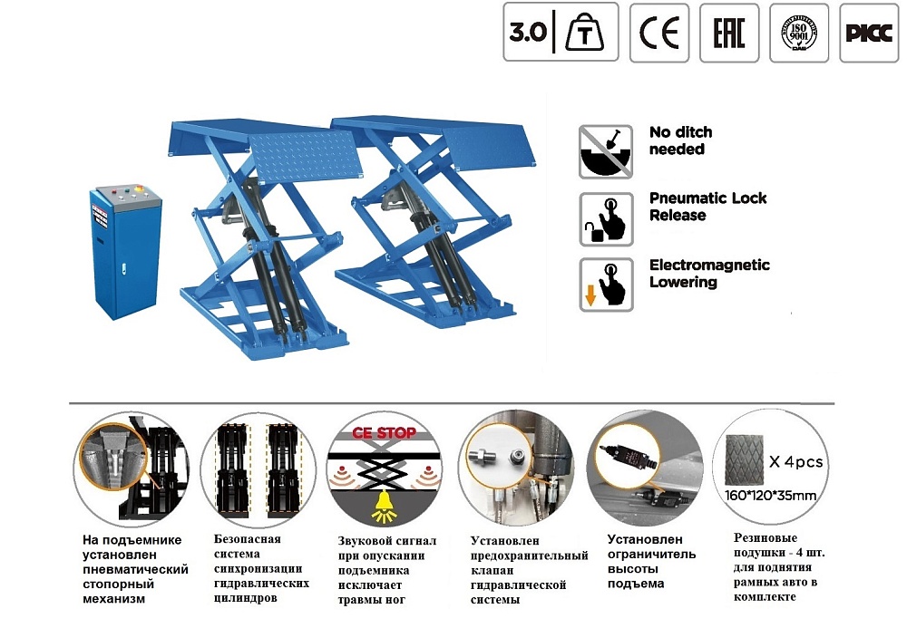 ES-1113M Подъемник ножничный г/п 3 т напольный купить в Новосибирске цена ✅ - Все для СТО