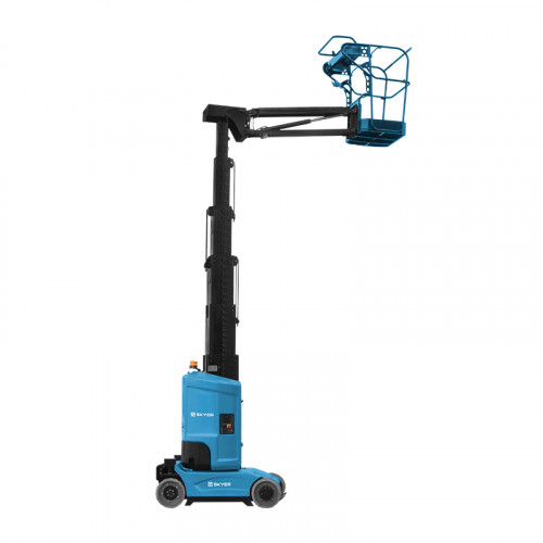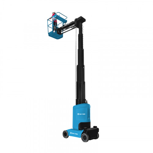Подъемник SKYER VML 1120 имеет мачту, которая может подниматься вверх на высоту до 9.2 м. Горизонтальный вылет стрелы составляет 3 м, благодаря этому рабочая платформа может достигать труднодоступных мест. Подъемник обладает отличной маневренностью за счет небольших габаритов и малого радиуса поворота, может передвигаться при максимально поднятой платформе. В сложенном состоянии модель свободно проезжает через дверные проемы и двери лифта. Грузоподъемность составляет 200 кг.