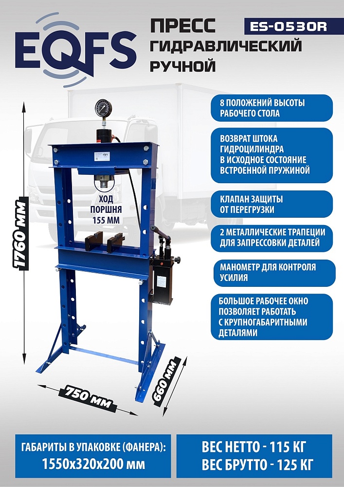 ES-0530R Пресс гидравлический ручной, 30 тонн купить в Новосибирске цена ✅ - Все для СТО