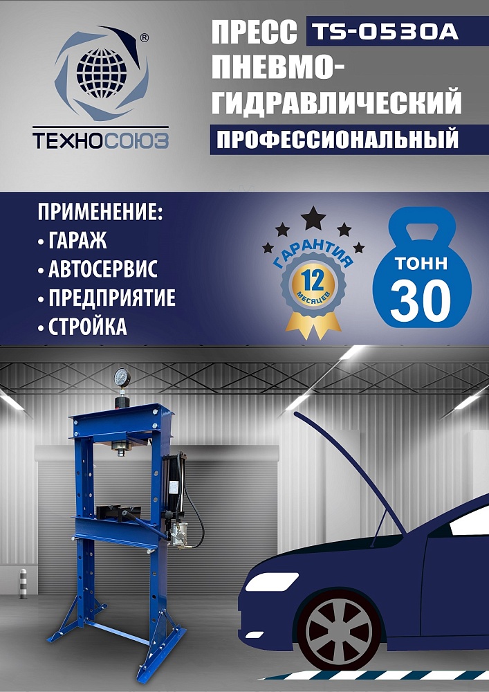 Пневмогидравлический пресс 30 тонн TS-0530A: мощь и универсальность для СТО