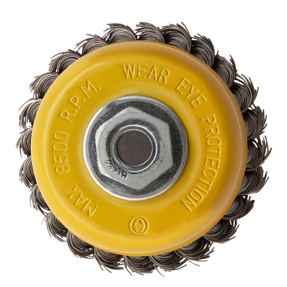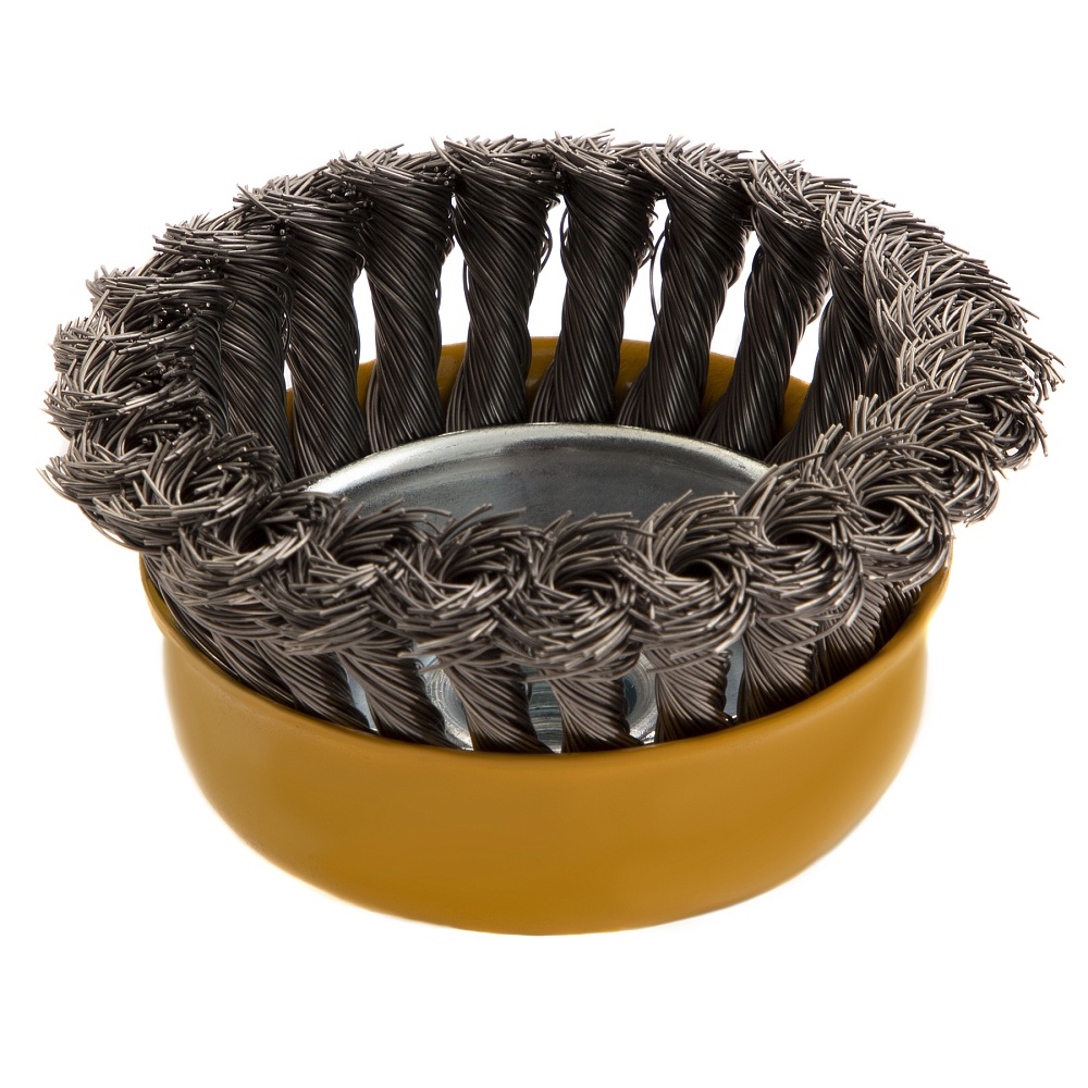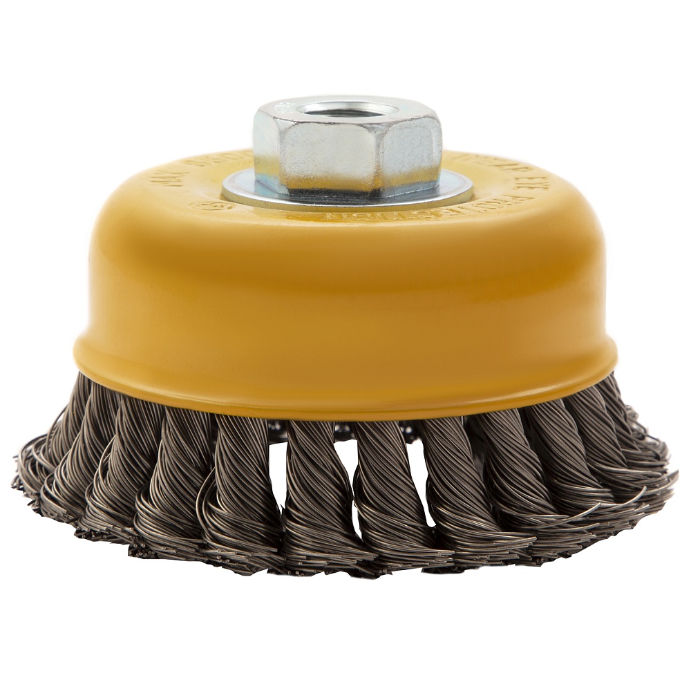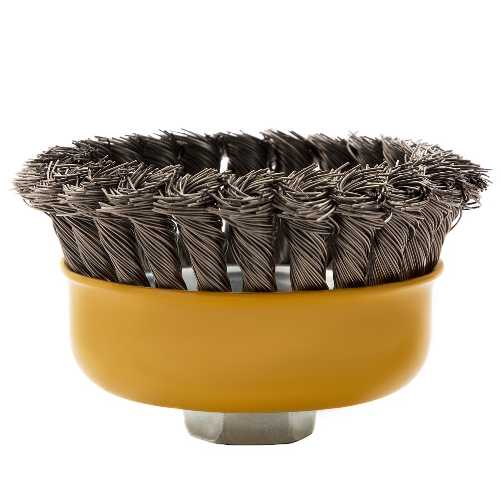 Щетка для УШМ, 100 мм, "Чашка", крученая нержавеющая проволока 0.5 мм, М14 Denzel купить в Новосибирске цена ✅ - Все для СТО