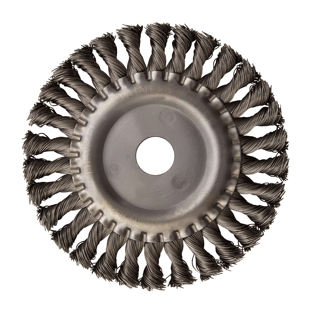 Щетка для УШМ, 150 мм, "Плоская", крученая нержавеющая проволока 0.5мм, посадка 22.2 мм Denzel купить в Новосибирске цена ✅ - Все для СТО