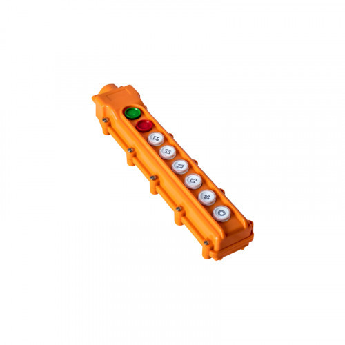 8 больших кнопок с графическими символами позволяют легко управлять всеми функциями тельфера: перемещать грузы в вертикальной и горизонтальной плоскостях, запускать и останавливать работу оборудования.