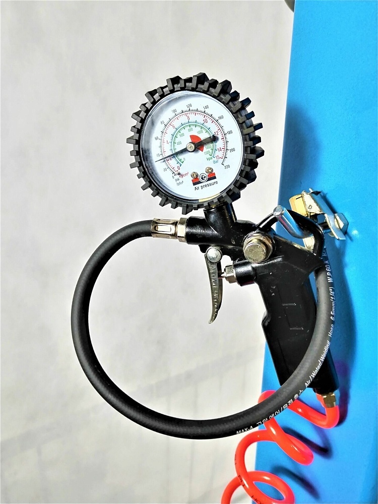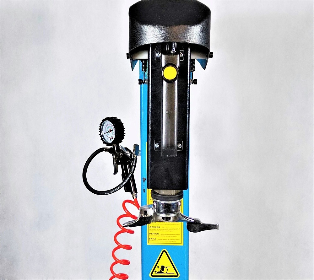 Автоматический станок, внешний захват Ø 11-26", внутр захват Ø 13-27",  максимальный  диаметр колеса 1050мм, мотор инвертер 220V/1,1 kWt, регулируемая скорость вращения стола, подготовка воздуха, пистолет для подкачки с манометром