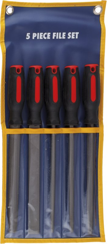 KA-F1012-8 Набор напильников 200 мм, 5 предметов. Используются для обработки металлических поверхностей. Широко применяются в слесарных мастерских, автосервисах, на производстве. Особенности: Идеальный угол режущих кромок обеспечивает точность обработки поверхности и удобство в работе. Эргономичная форма ручек и резиновое покрытие позволяет надёжно фиксировать инструмент в руке. Наличие отверстия в рукоятке позволяет при необходимости хранить инструмент на крючке. Удобный чехол для хранения с металлическими люверсами и прозрачными карманами для визуального восприятия типа (формы) напильника. Длина рабочей поверхности: 200 мм. Общая длина каждого напильника: 305 мм. Комплект набора: Напильник полукруглый №1, 200мм - 1 шт. Напильник прямоугольный №2, 200мм - 1 шт. Напильник круглый №2, 200мм - 1 шт. Напильник квадратный №2, 200мм - 1 шт. Напильник треугольный №2, 200мм - 1 шт. Чехол из кожзаменителя - 1 шт. При работе инструментом обязательно используйте защитные очки!