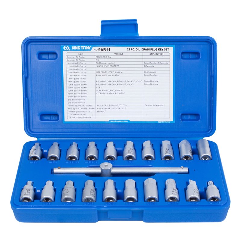 Набор насадок для пробок слива масла, 21 предмет KING TONY 9AR11 купить в Новосибирске цена ✅ - Все для СТО