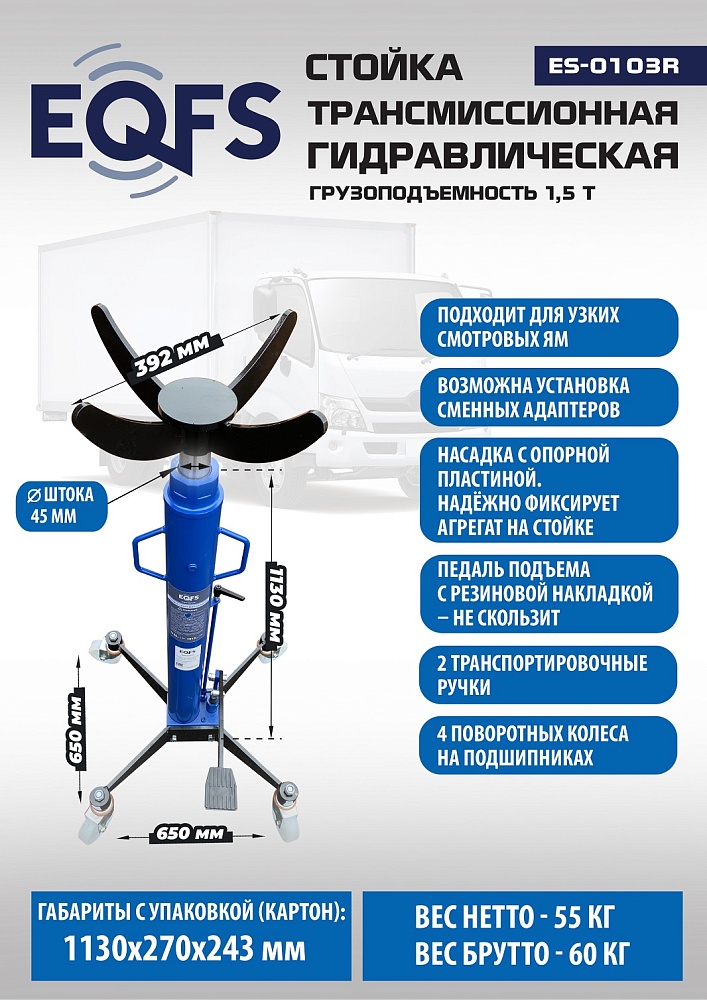 ES-0103R Стойка трансмиссионная гидравлическая 1,5т купить в Новосибирске цена ✅ - Все для СТО