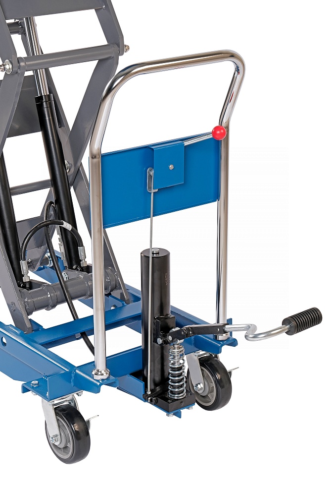 - Ножной гидравлический привод экономит силы, производя точный подъем груза
