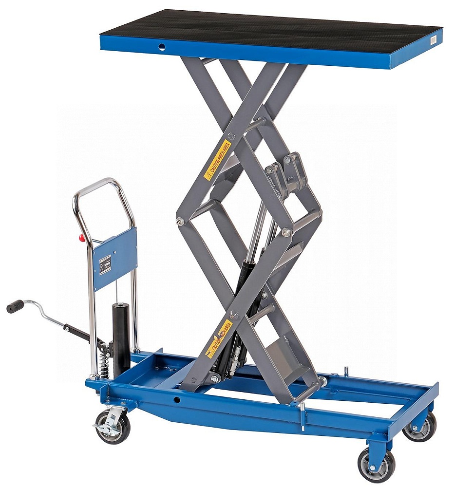 Платформенная тележка с подъёмным столом с ножным подъёмом совмещают в себе функции стационарных подъёмных столов и платформенных тележек: позволяют не только приподнимать грузы, но и перемещать их на расстояния. Тележки с подъёмным столом с ручным подъёмом мобильны, эффективны и надёжны.