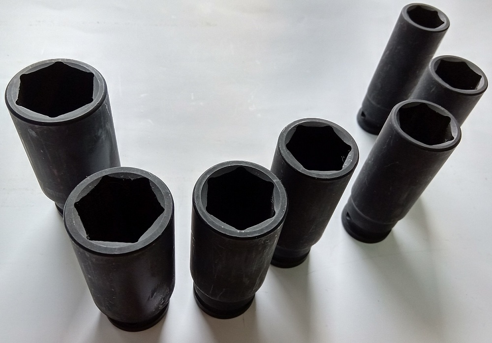 Набор удлиненных ударных торцевых головок для гайковерта 1/2” - 17, 19, 21, 22, 23, 24, 27мм. Изготовлены из стали легированной хромом и молибденом. Легирование стали молибденом и хромом повышает прочность, ударную вязкость и коррозионную стойкость стали.