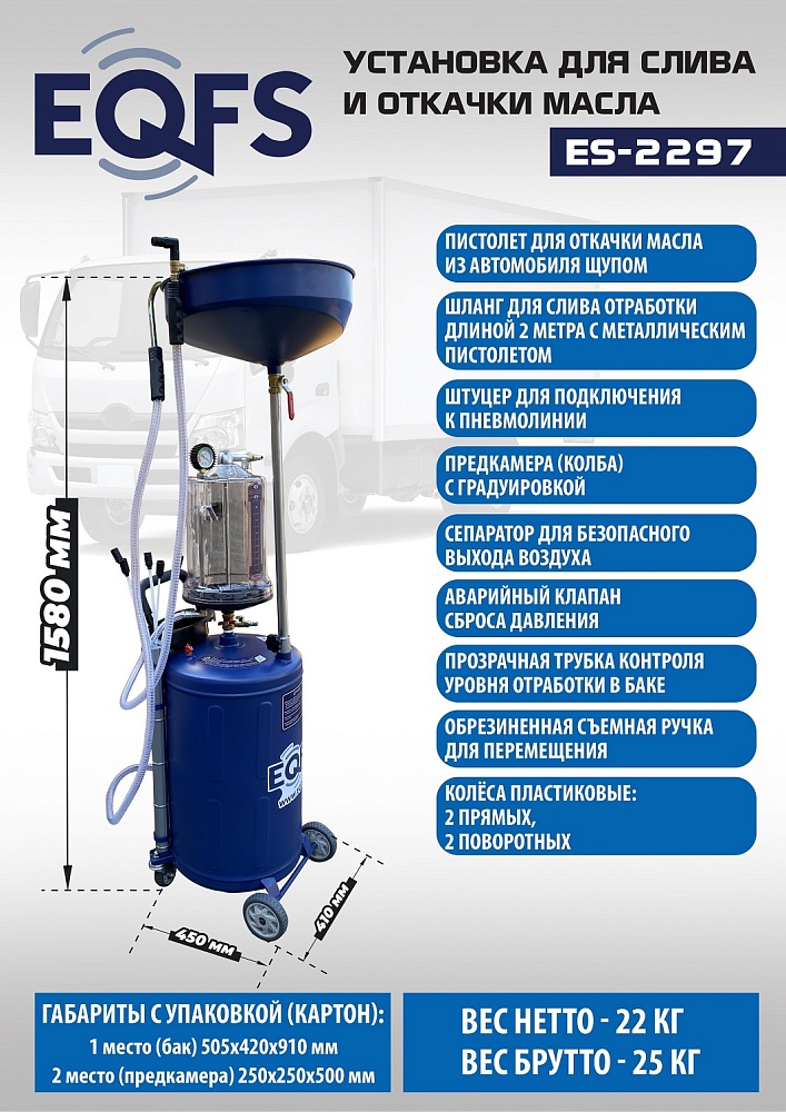 ES-2297 Установка для слива отработанного масла купить в Новосибирске цена ✅ - Все для СТО